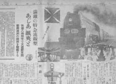 「あじあ」運行停止後の1944年8月1日に「あじあ」の走る連京腺では単線の